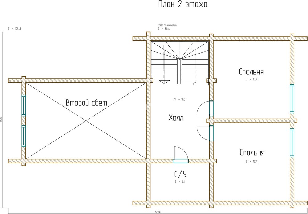 Площадь 2 этажа: 100 м